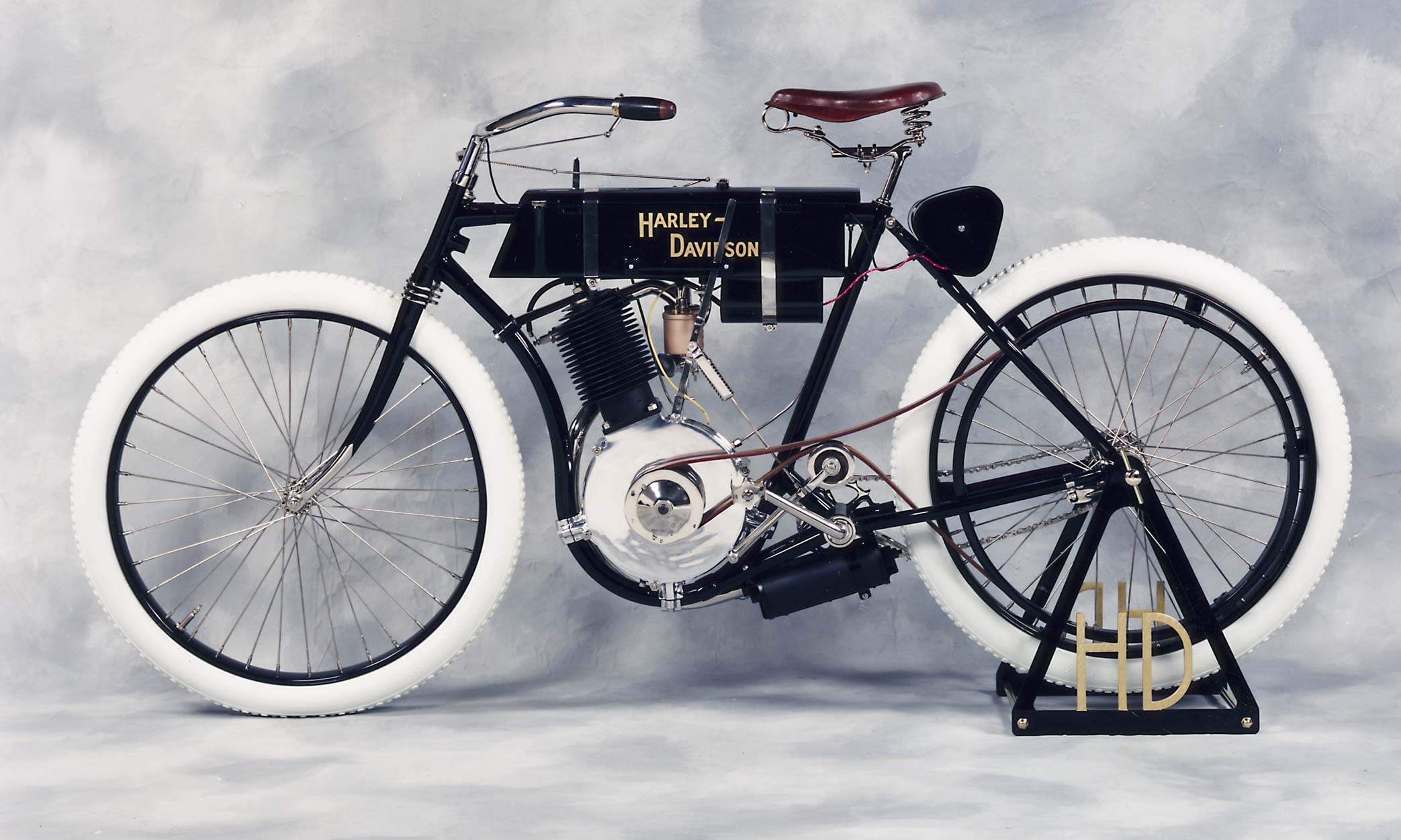 Sepeda motor yang dibuat Harley dan Davidson dibuat di gubuk itu pada 1903 dan dirancang untuk balap. Tiga motor dibuat pada tahun pertama itu. Satu buah berhasil dijual oleh diler pertama Harley-Davidson — C.H. Lang di Chicago, Illinois.